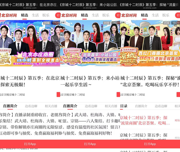 如果说对商圈的深度叙事赢得了观众的“心”,那么节目在互动模式上的锐意创新,则精准转化为强劲的“消费动能”。本季节目创新采用“北京时间+微博直播”双平台联动模式。在录制期间,北京时间App开启全程12小时不间断直播,并不定时截屏抽奖,打造陪伴式互动新体验。截至收官,节目累计完成8场直播,总互动量高达1.15亿,总点赞量高达14103万。单场最高评论超7.6万条,点赞突破2779万,创下北京时间平台新高;微博平台直播6次,单场最高观看量79.9万+,曾跻身热度榜TOP1,成功实现破圈引流。这套多平台互补的组合拳,不仅打破了线上观看的“距离感”,更让观众从“被动看”变为“主动参与”,实现了节目与观众的深度联结。