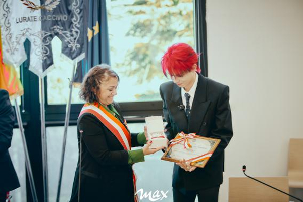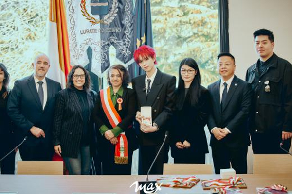 当地时间2月24日上午,意大利北部伦巴第大区科莫省卢拉泰卡奇维奥(Lurate Caccivio)市政厅内举行隆重的文化大使授予仪式,中国青年艺人、十个勤天成员何浩楠受邀出席,正式被授予意大利伦巴第大区卢拉泰卡奇维奥文化大使称号。此次授勋旨在依托艺人的影响力向中国推广卢拉泰卡奇维奥(Lurate Caccivio)的地域文化、特色产业与人文魅力,进一步深化中意两国的文化交流与民间互动。