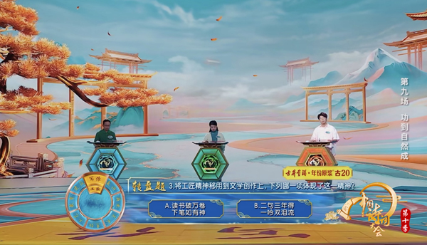 诗词从不是孤立的文字,它藏着山河的壮阔、人文的温度,也藏着一代代中国人的坚守与付出。本期节目里的几道外景题,便以全新视角,赋予了“功到自然成”更鲜活的意义,也让我们看到,那些跨越千年的坚守,从未褪色。